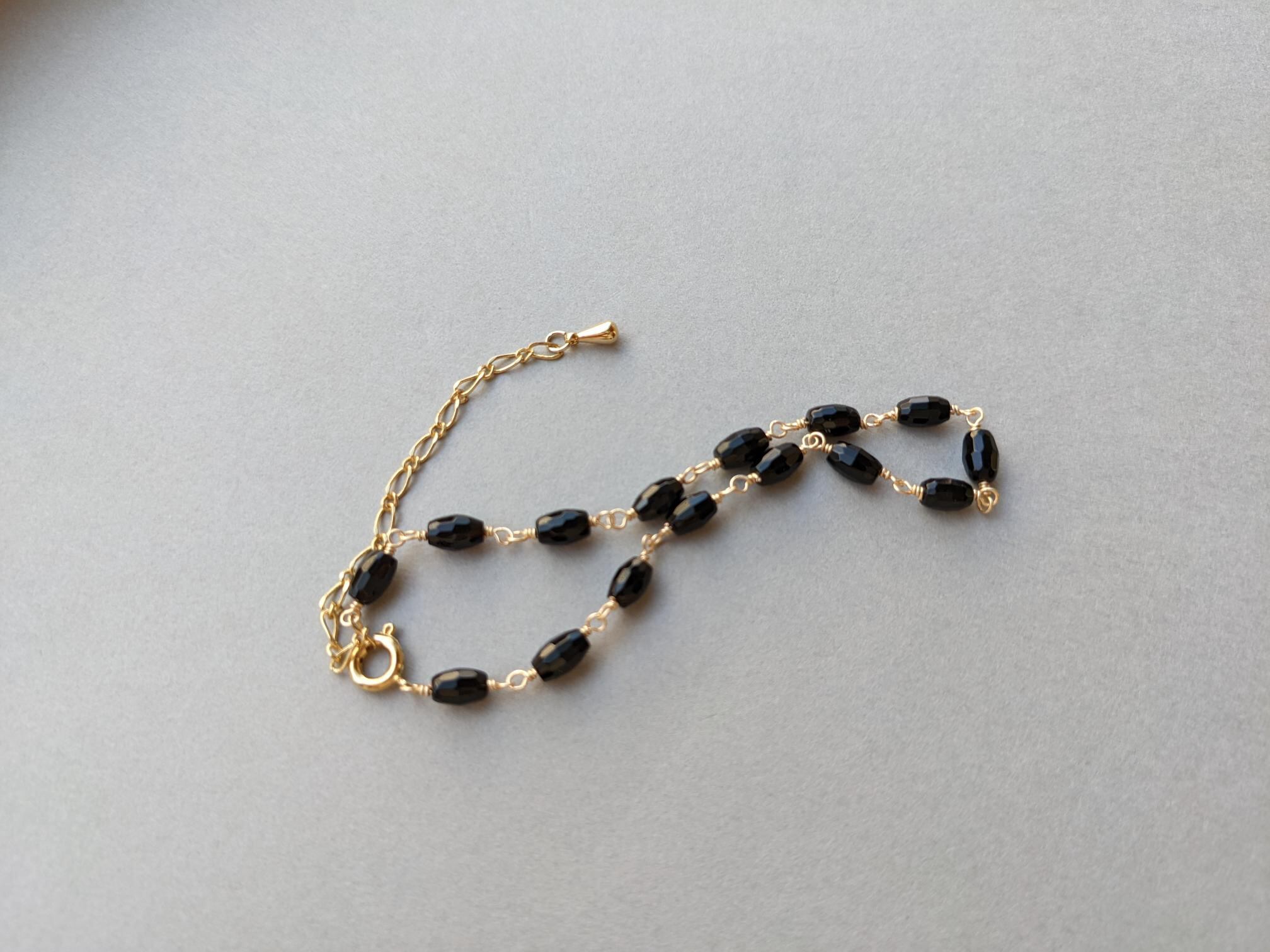 オニキスをつなげたアンティークな雰囲気のブレスレットです。
